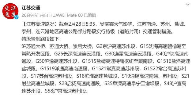 原标题:江苏部分高速路段抓行特级交通管束!3家汽渡临时停航