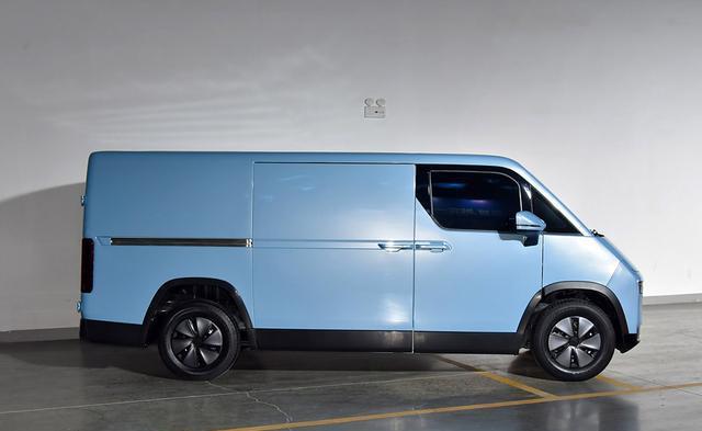 车身侧面部分,固然是使用了平头式的结构,可是前轴为前置布局,悉数车身侧面造型很平滑,使用了单侧的侧滑门预备,另外新车还使用了玄色的轮眉和下包围艰涩。轮毂使用了灰色的轮毂罩艰涩,看上去很前卫。