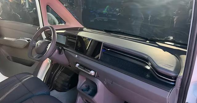内饰部分,新车的中控台造型和福田卡文乐福车型立场一致,使用了悬浮式的姿色盘和中控大屏,三幅式的平底主义盘造型很别致。