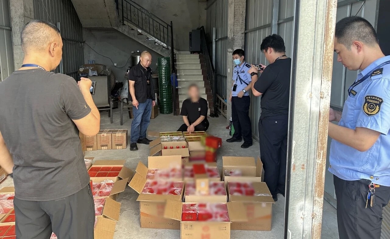 前不久,办案民警兵分多路,在成皆、绵阳多地同步收网,告成打消制假窝点2处、仓储窝点2处,握获涉案违纪嫌疑东说念主6名。现场查获假冒注册商标酒类产物100余箱,扣押渊博品牌酒包装材料、制假用具,涉案价值近300万元。