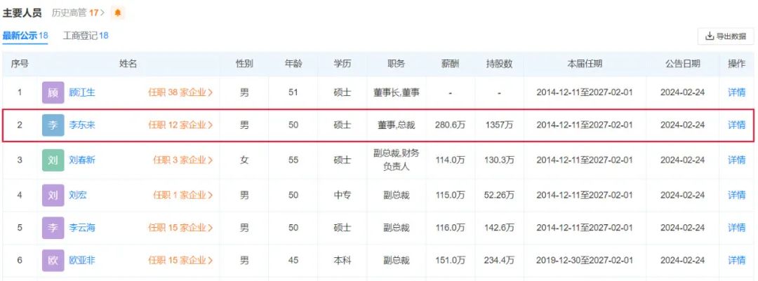 2023年,李东来的税前答谢为280万元,抓有公司2.36%的股份。