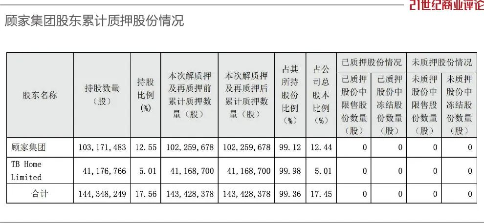 4月18日,顾旗下的顾家集团,将抓有的顾家家居股票进行再质押。