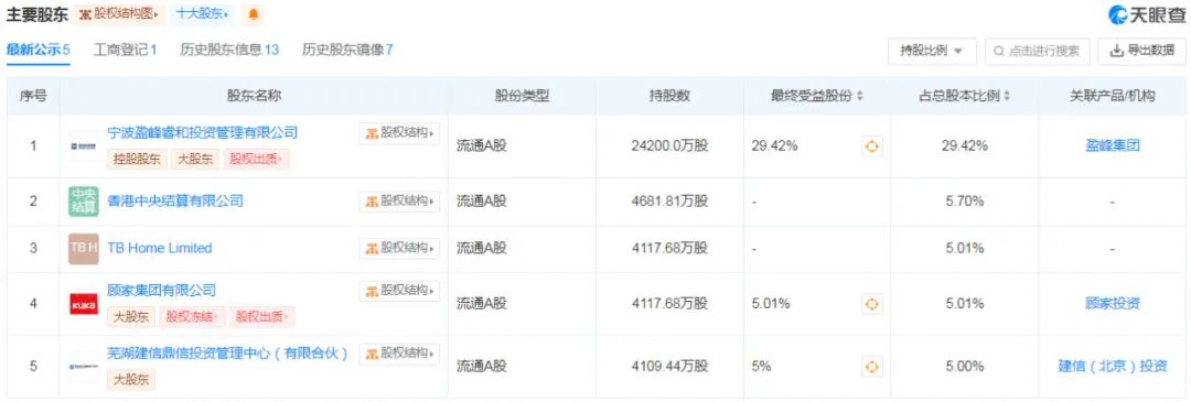 何剑锋实控的盈峰睿和,成为顾家家居最大鼓吹,抓股29.42%,顾江生眷属的抓股降至15.48%。