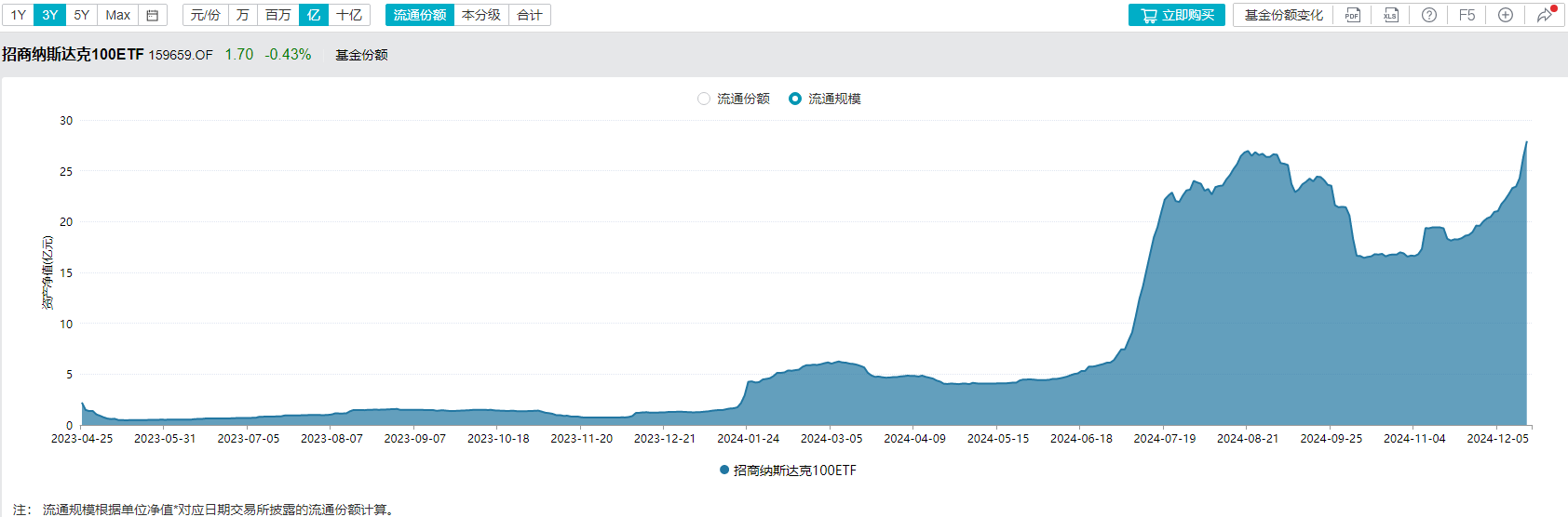资金流向方面,金融末端最新数据败露,纳斯达克100ETF(159659)12月18日净流入达3.48亿元。拉永劫辰线来看,该ETF流畅14日获资金净流入,累计“吸金”超10.6亿元;最新流通份额18.41亿份,创历史新高。
