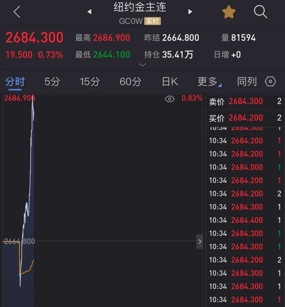 海外金价日内涨近20好意思元/盎司,最新报2684.3好意思元/盎司;白银打破31好意思元/盎司关隘,最新报31.06好意思元/盎司。