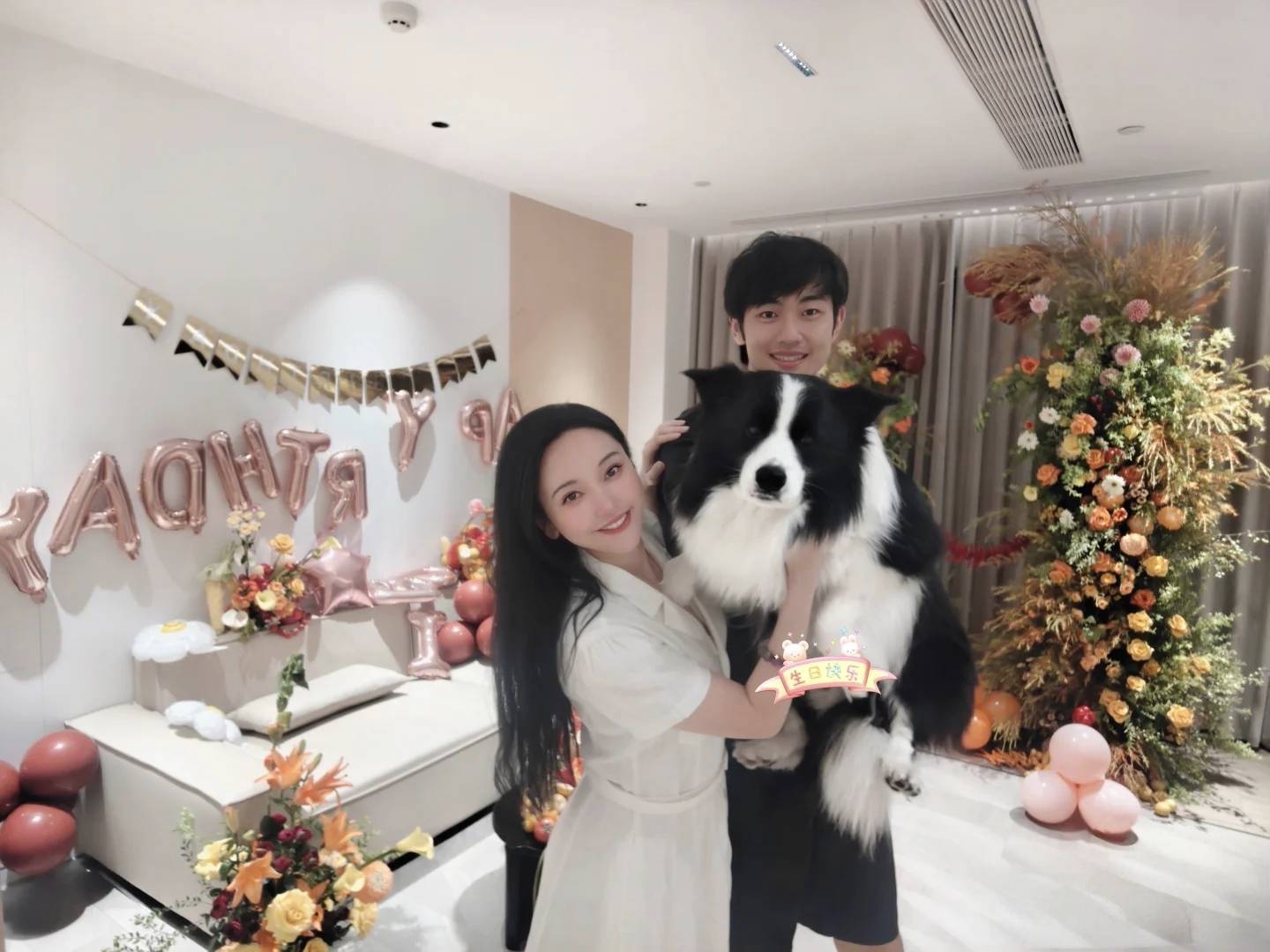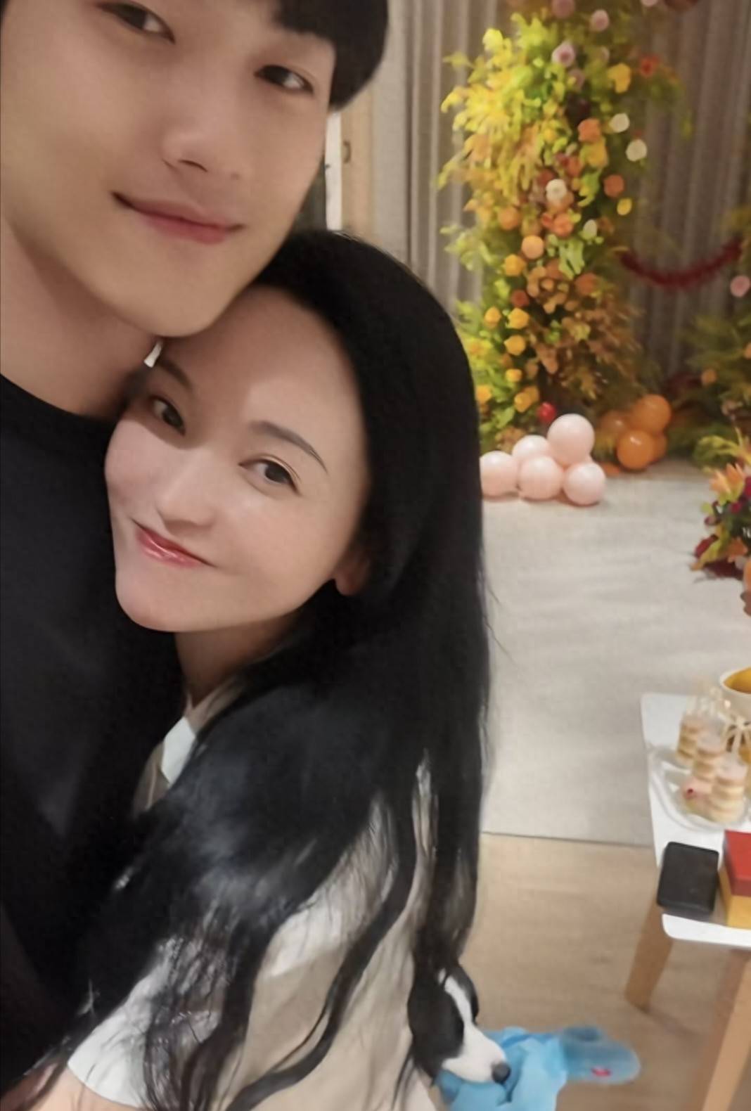 其实光看两东说念主的外在,并看不出有这样大的年齿差,说是同龄东说念主也有好多东说念主信服。他们抱着家里的大型宠物狗,看起来好温馨。