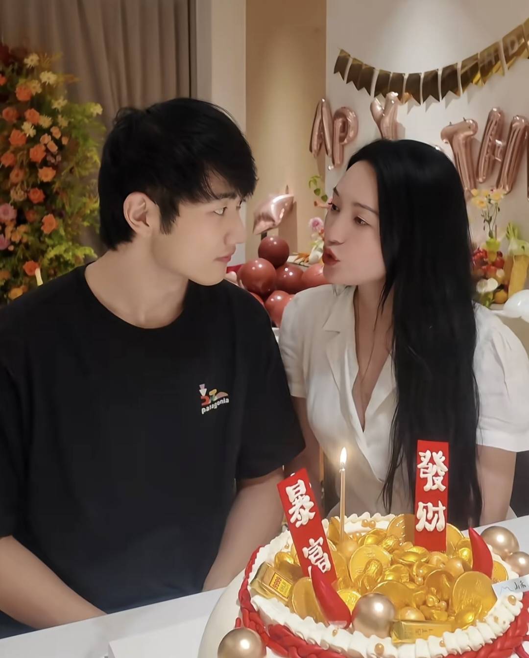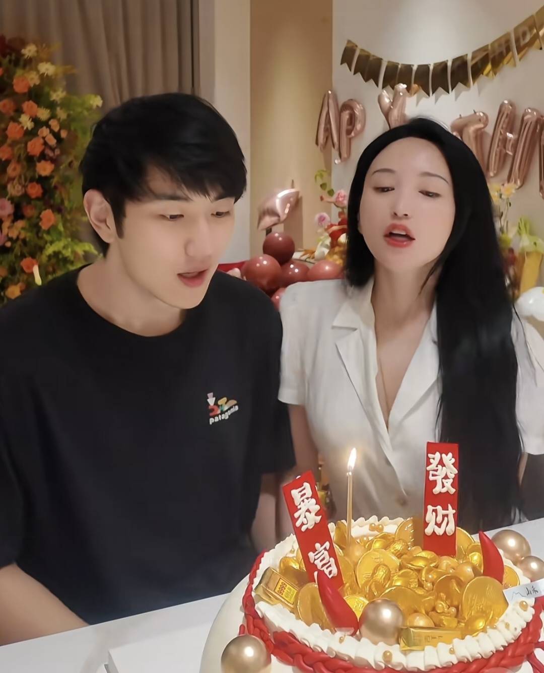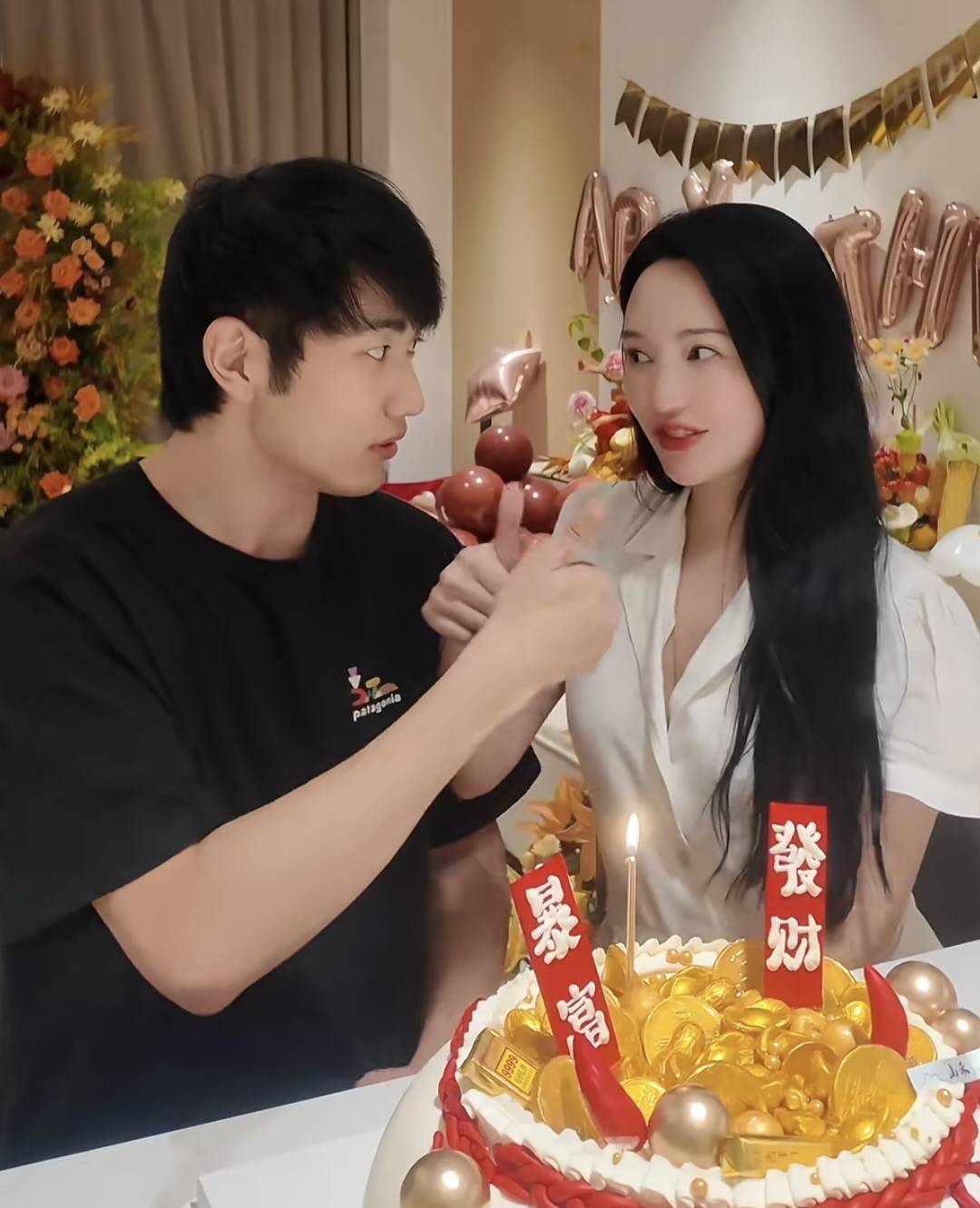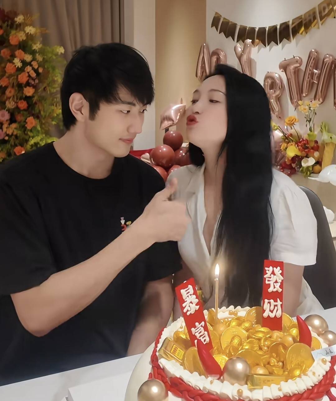 金莎给孙丞潇准备了一个金银宝蛋糕,写着“暴富、发家”,对男友奉求厚望!
