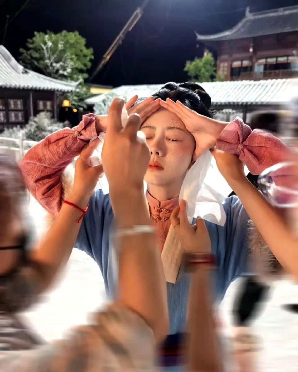 之前杨紫拍《千里香如屑》时,亦然在盛夏穿戴巩固的古装戏服吊威亚,一场打戏拍下来,里里外外的衣服全被汗水渗入,卸妆时发现脸上皆起了痱子,但她也曾笑着说“没事,风尚了”。张若昀拍《雪中悍刀行》时,在零下20℃的东北室外拍戏,穿戴单衣躺在雪地里,拍完后冻得说不出话,缓了半小时才规复过来。还有赵丽颖拍《知否知否》时,冬天拍淋雨戏,冷水从新顶浇下来,她硬生生扛了半小时,只为了呈现最真实的成果。