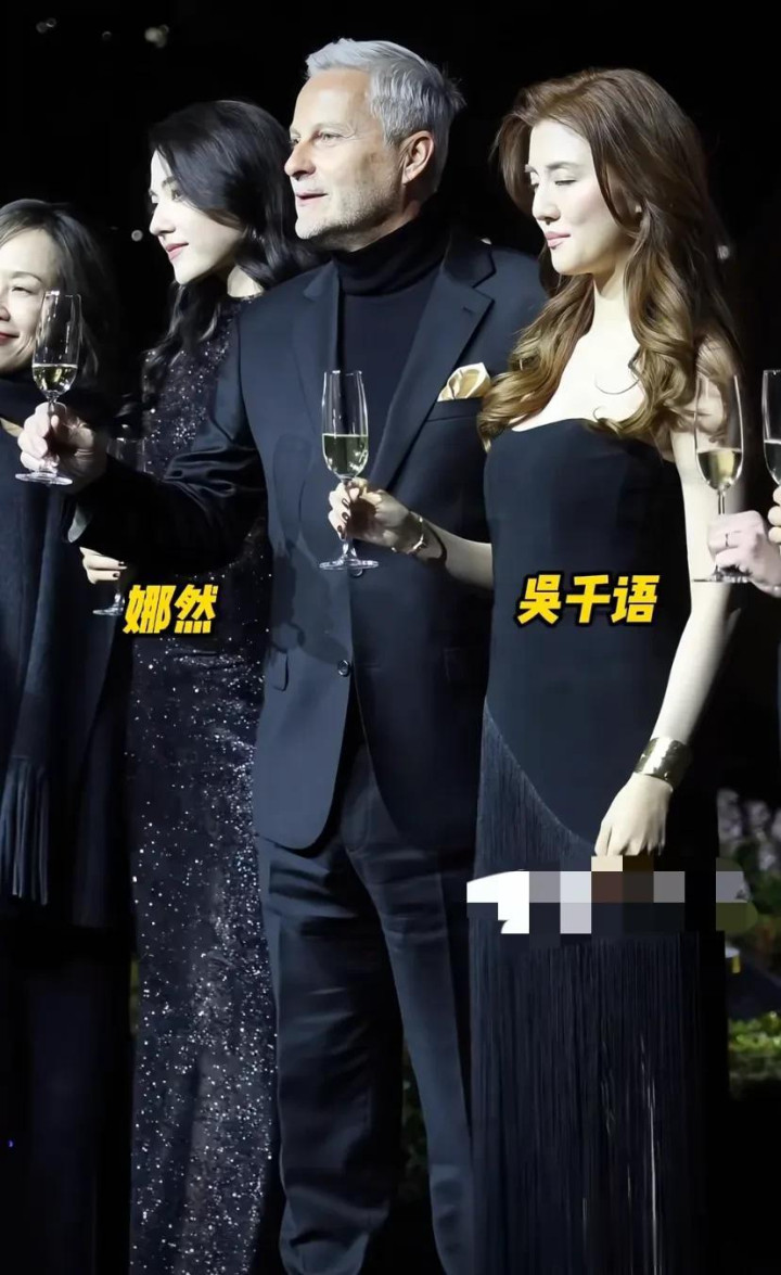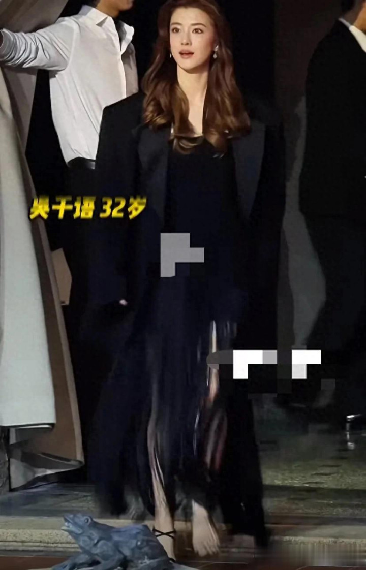 32岁的吴千语,一头金色鬈发,身穿玄色流苏长裙,外面搭配了玄色的西装外衣,举座看起来比较知性。