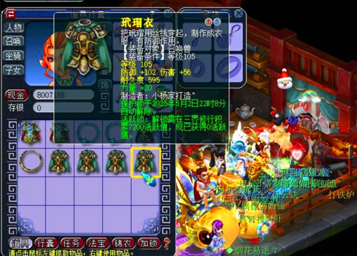 在虚幻西游中某些玩家打造召唤兽装备的时辰亦然有可能会逆袭收获的,就比如上头的这位,上头这位玩家打造召唤兽装备时就出了这样一件105级加多了56点伤害和20点力量的召唤兽装备,像上头这种属性的召唤兽装备在小编方位的处事器是大概卖到800支配的,如若上头这位玩家只是只是达到了这10件,那么上头这位玩家此次统统是收获的,但如若之前就还是打造了许多,只出了这样一件,那么很有可能会亏钱。