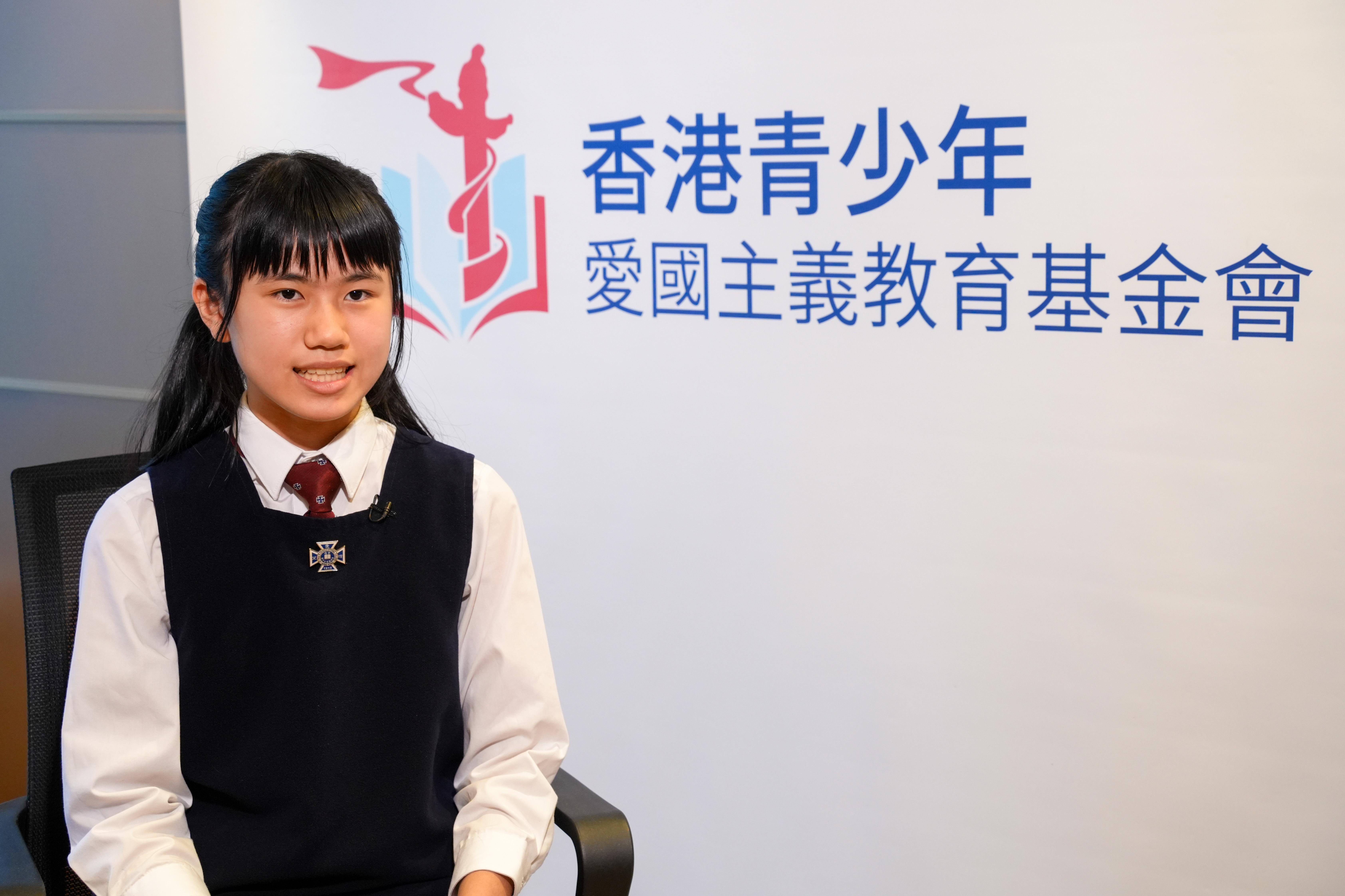 第二届“情系中华”香港青少年作文暨朗读大赛小学英文组总冠军冯靖霖接纳采访(1月29日摄)。